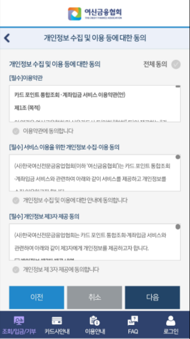이제껏 포인트를 쓰지 않았거나 포인트가 남아 있는경우라면 여신금융협회에 접속하여 자신의 계좌로 입금하거나 기부를 할 수 있습니다.