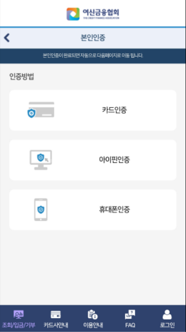 인증방법의 종류에는 카드인증/아이핀인증/휴대폰 인증이 있습니다.