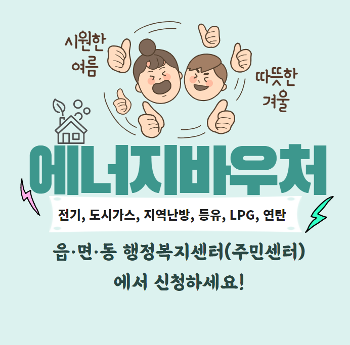 에너지 바우처를 통해 경제적인 부담을 줄이고, 시원한 여름과 따뜻한 겨울을 좀 더 편안하게 보낼 수 있기를 바랍니다. 해당되시는지 궁금하신분들은 다시한번 체크해 보시고 반드시 혜택받으시기 바랍니다.