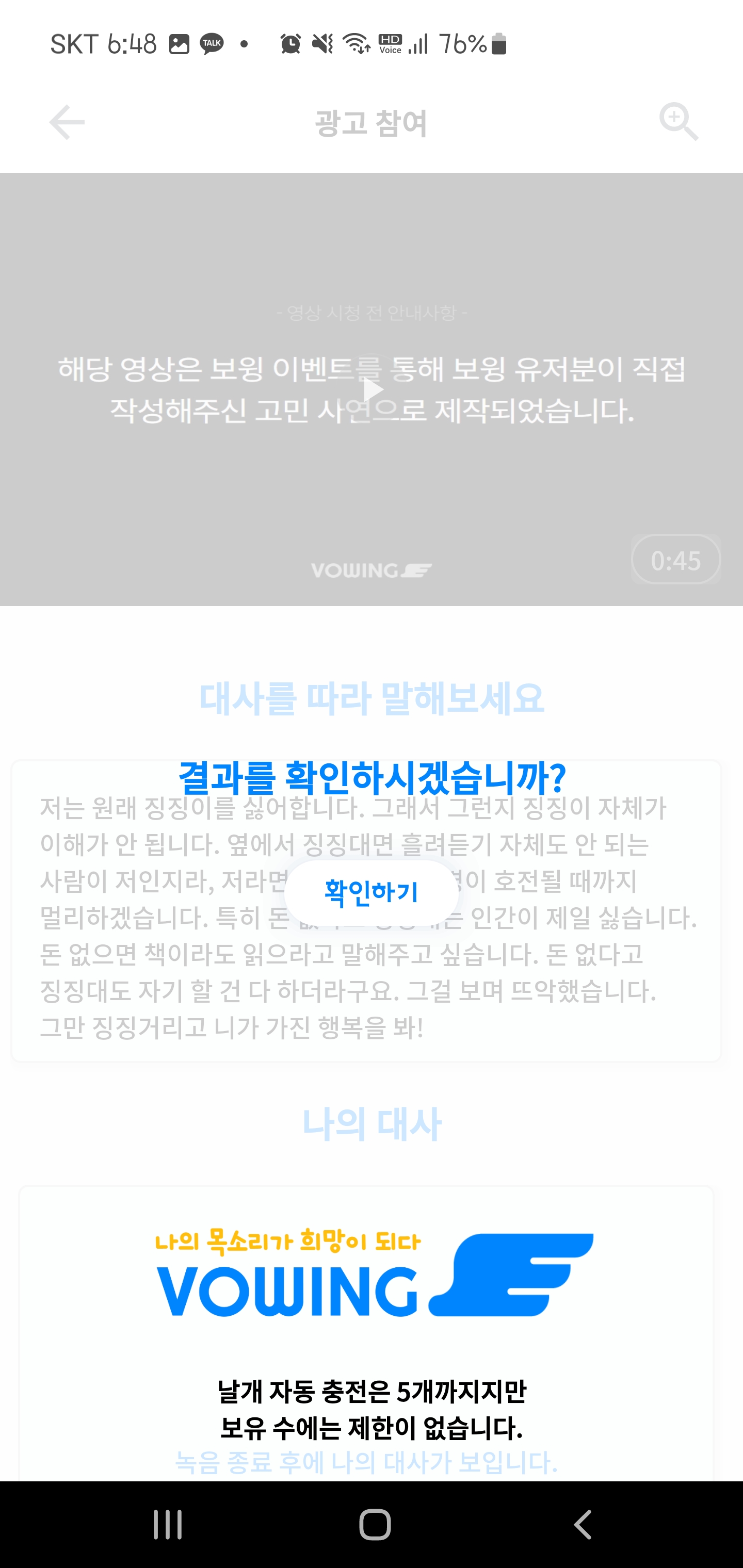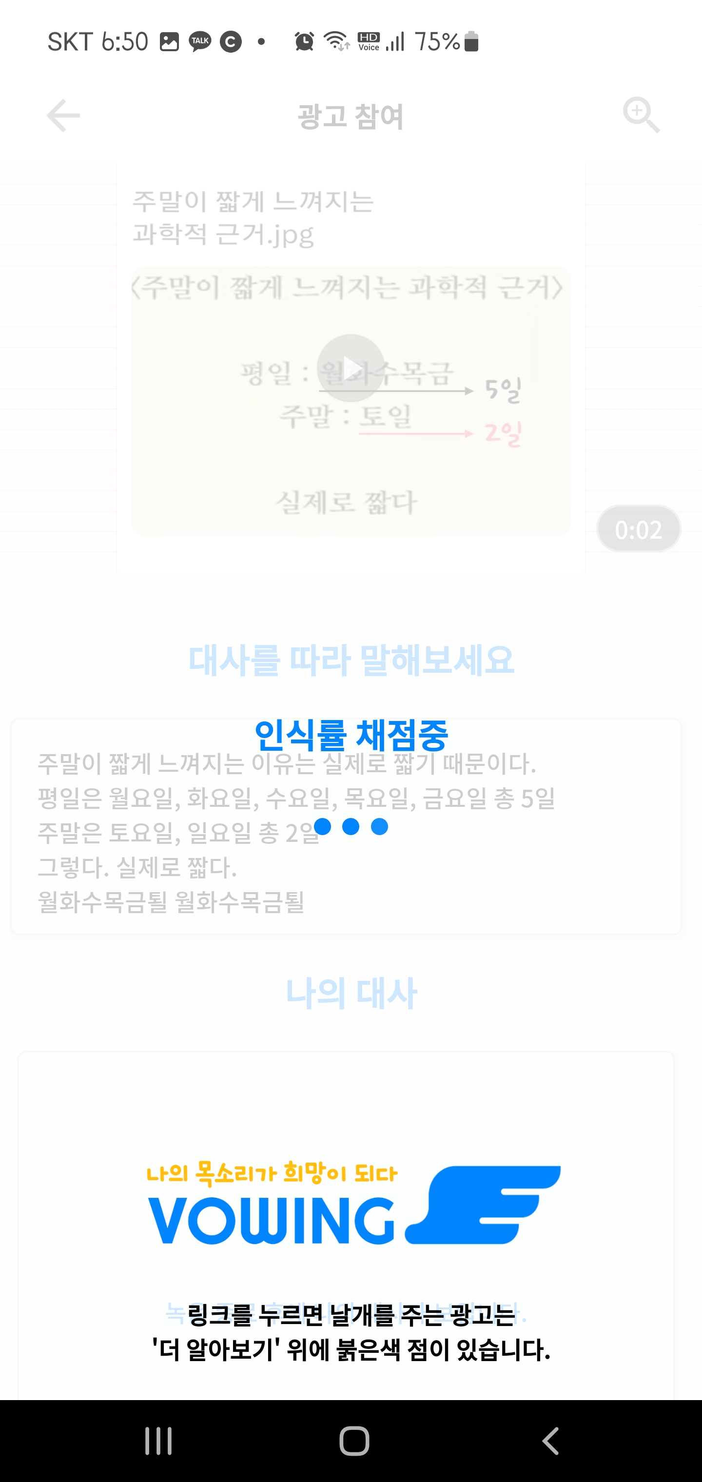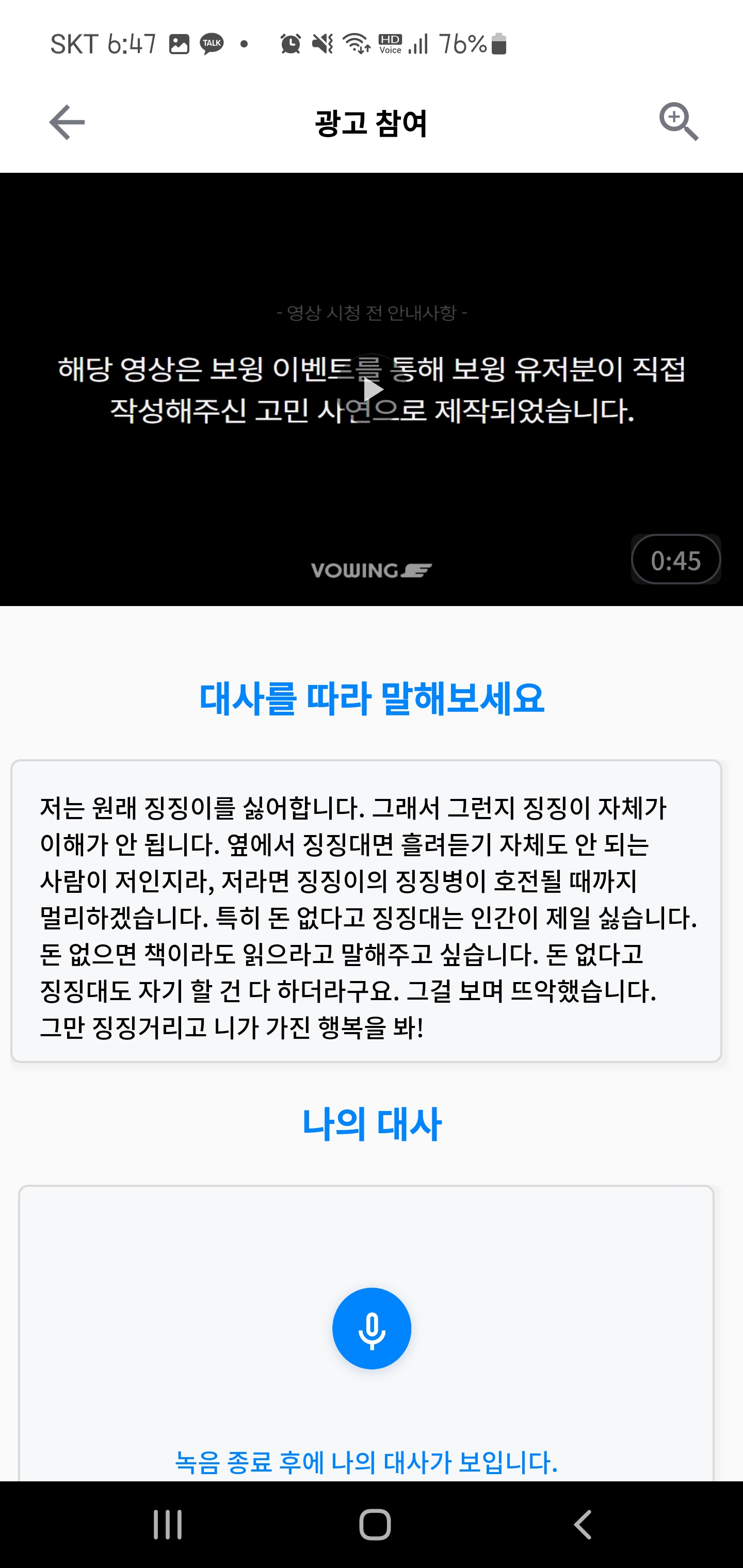 가운데 이미지는 광고를 터치한뒤 음성녹음을 하게 되어 있어 잠시 동안 광고를 틀어놓게 됩니다. (1초~30초 사이가 됩니다.)