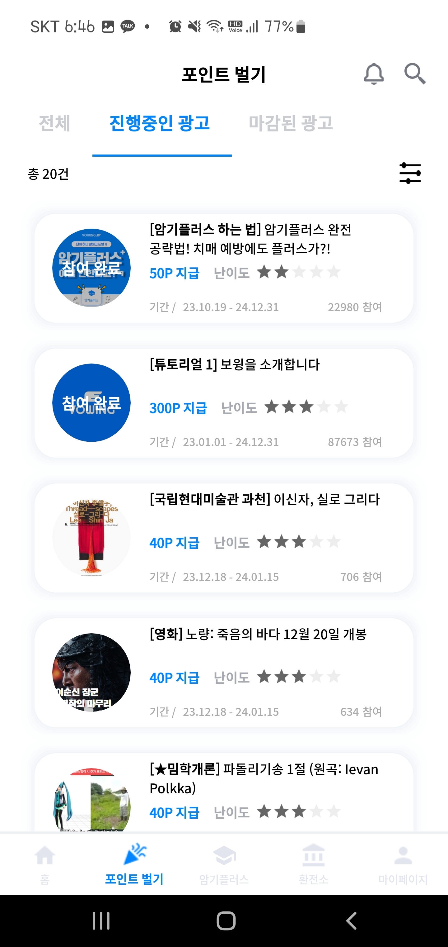 자신이 하기 좋은 광고를 선택하여 터치한 뒤 다음과 같이 진행됩니다.